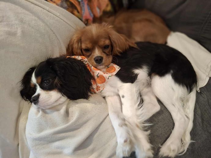 Pups are sold on a non-breeding contract and my breeding stock have genetic testing, heart certification checks as required by the OFA. The vet assess their hips, eyes by looking for any flaws and if found, refer to a specialist. All are deemed healthy, and I welcome you to reach out to my veterinarian if you have any concerns. My girls are retired by age 6, and then homed in loving families, boys have a longer breeding life, but that all depends on their health and whether or not I have females to match them with. I breed once a year and will only breed when I have a list. I am well connected with the Cavalier community so I can usually find pups to match with the right home.
